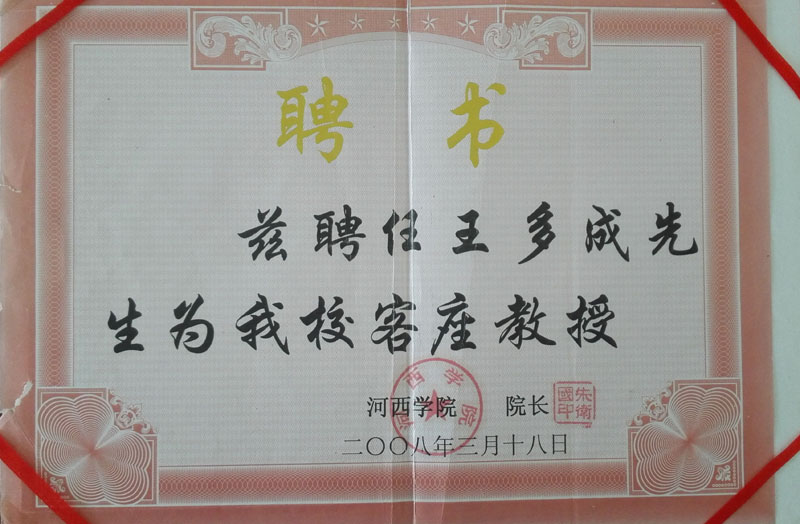 2008年河西學(xué)院客座教授聘書