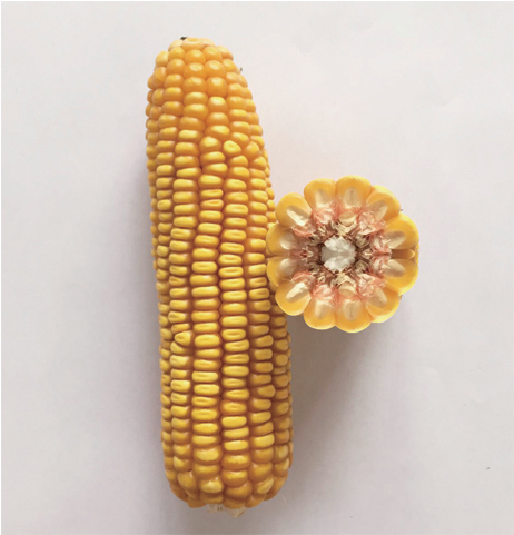 特征特性:幼苗葉鞘紫色,葉片綠色。株型半緊湊,株高232cm,穗位高79cm,全株葉片數(shù)15-17片,雄穗分枝數(shù)4-6個,花藥黃色,穎殼綠色,花絲紫色;穗錐形,穗軸紅色,穗長14.6cm,穗粗4.5cm,軸粗2.6cm,穗行數(shù)14,行粒數(shù)33粒;籽粒黃色、半馬齒型,千粒重323.6g,出籽率89.3%;成株根系發(fā)達,莖稈堅韌,抗倒伏。高抗瘤黑粉病、莖基腐病和絲黑穗病,中抗大斑病。甘肅春播生育期90-95天,屬極早熟品種。適宜在海拔1800m以下,≥10℃有效積溫達2200℃以上,雨量充沛或有灌溉條件的西北春播區(qū)種植。 產(chǎn)量表現(xiàn):2015年品比試驗在密度6000株/畝下,平均畝產(chǎn)達899kg;8000株/畝下,平均畝產(chǎn)達947kg。 |